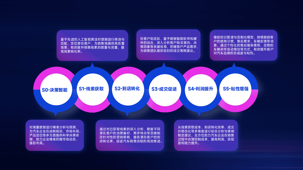 通过拓宽潜在客户来源、、优化线索分配并提高到店转化率,,,,以增强销售效率。。。。同时,,利用线索数据不断优化分析模型,,,有效提升转化率,,,扩大营销影响力。。
